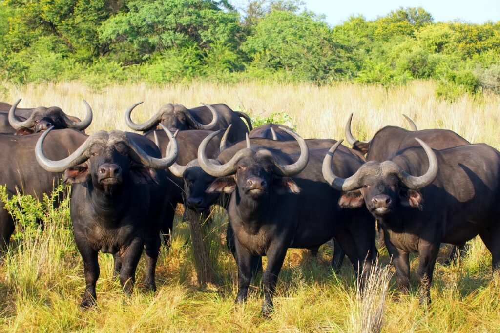 Cape buffalo, also known as African buffalo, are a common sight on safaris in